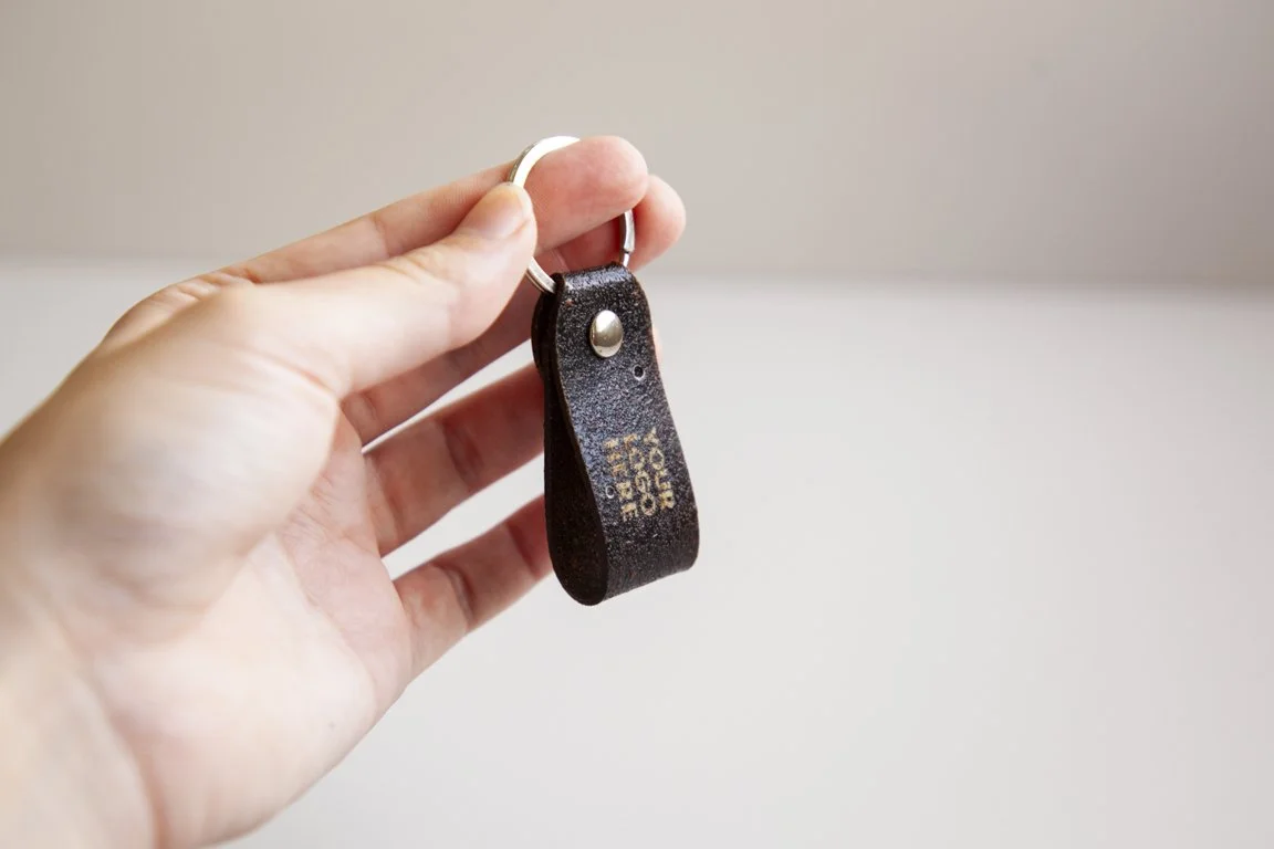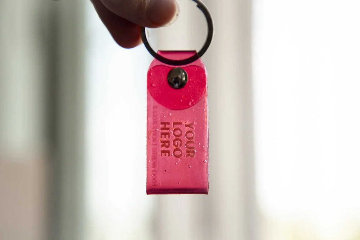 Un llavero marcado a láser en formato strap. Cuando el b-material deje de ser útil, puedes tratarlo como un residuo orgánico.