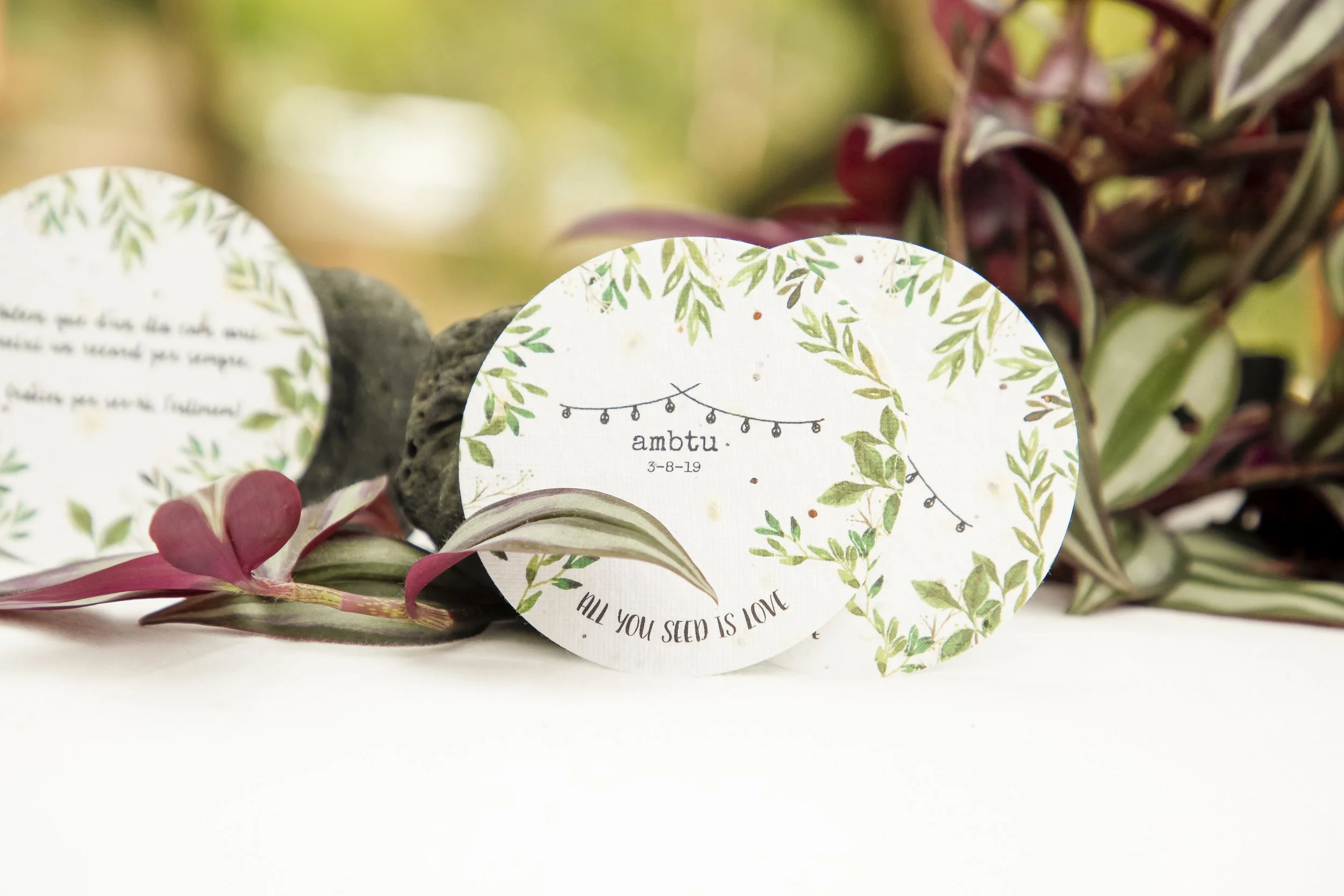 Marcasitios y marcamesas personalizados en papel, madera y biomateriales para que cada invitado encuentre su lugar con estilo.