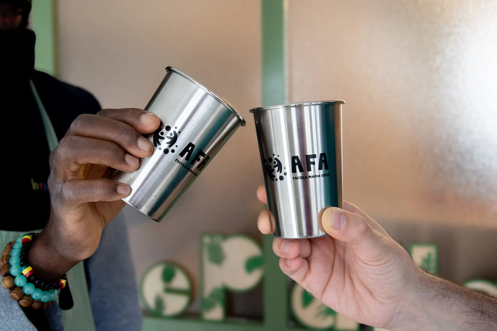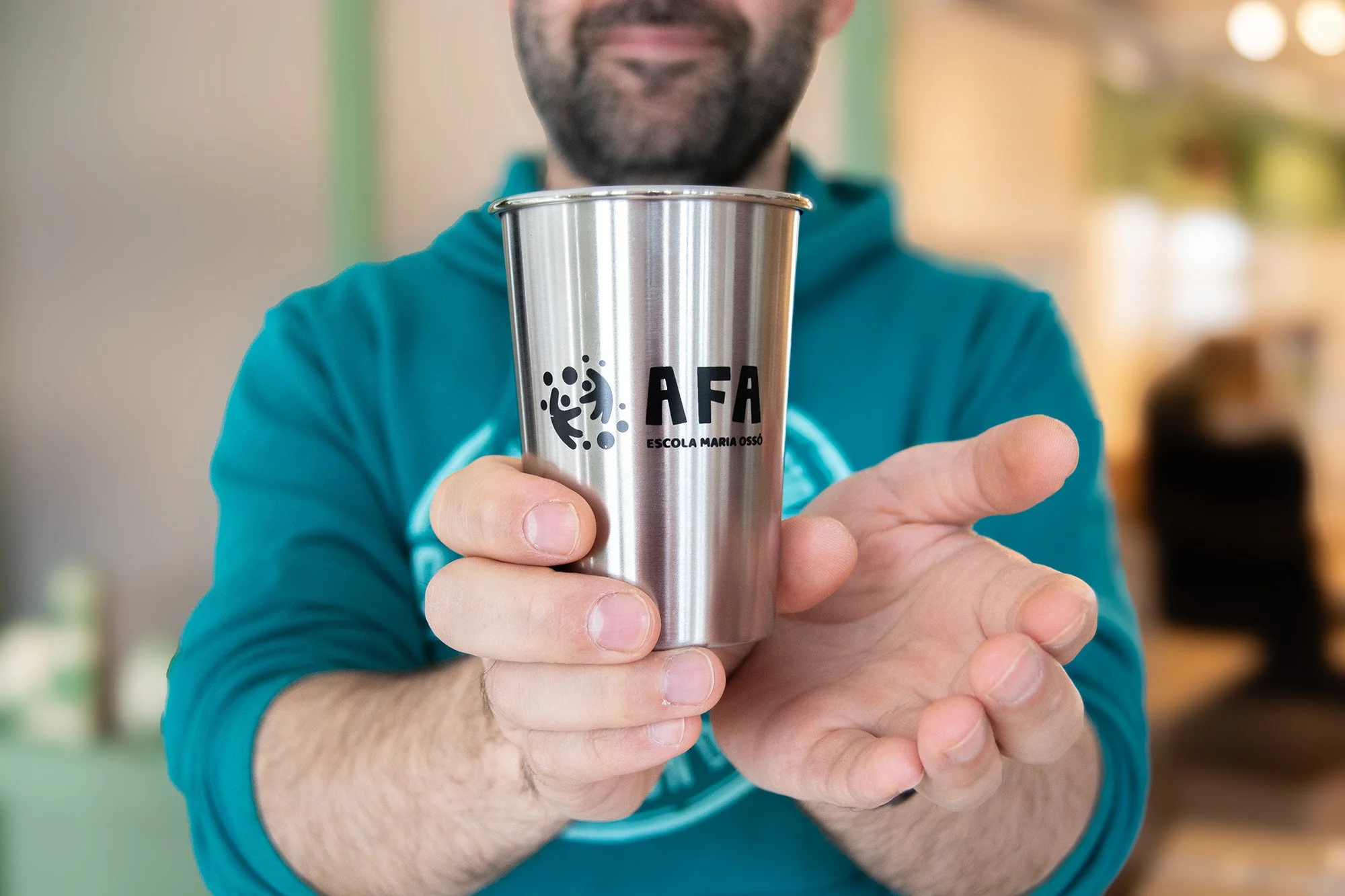 Vasos de acero inoxidable con personalización digital. Reutilizables y duraderos.