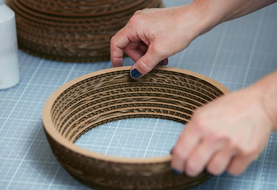 Trabajamos con planchas de cartón y técnicas de fabricación digital hasta dar con una estructura ligera, estable y visualmente atractiva.