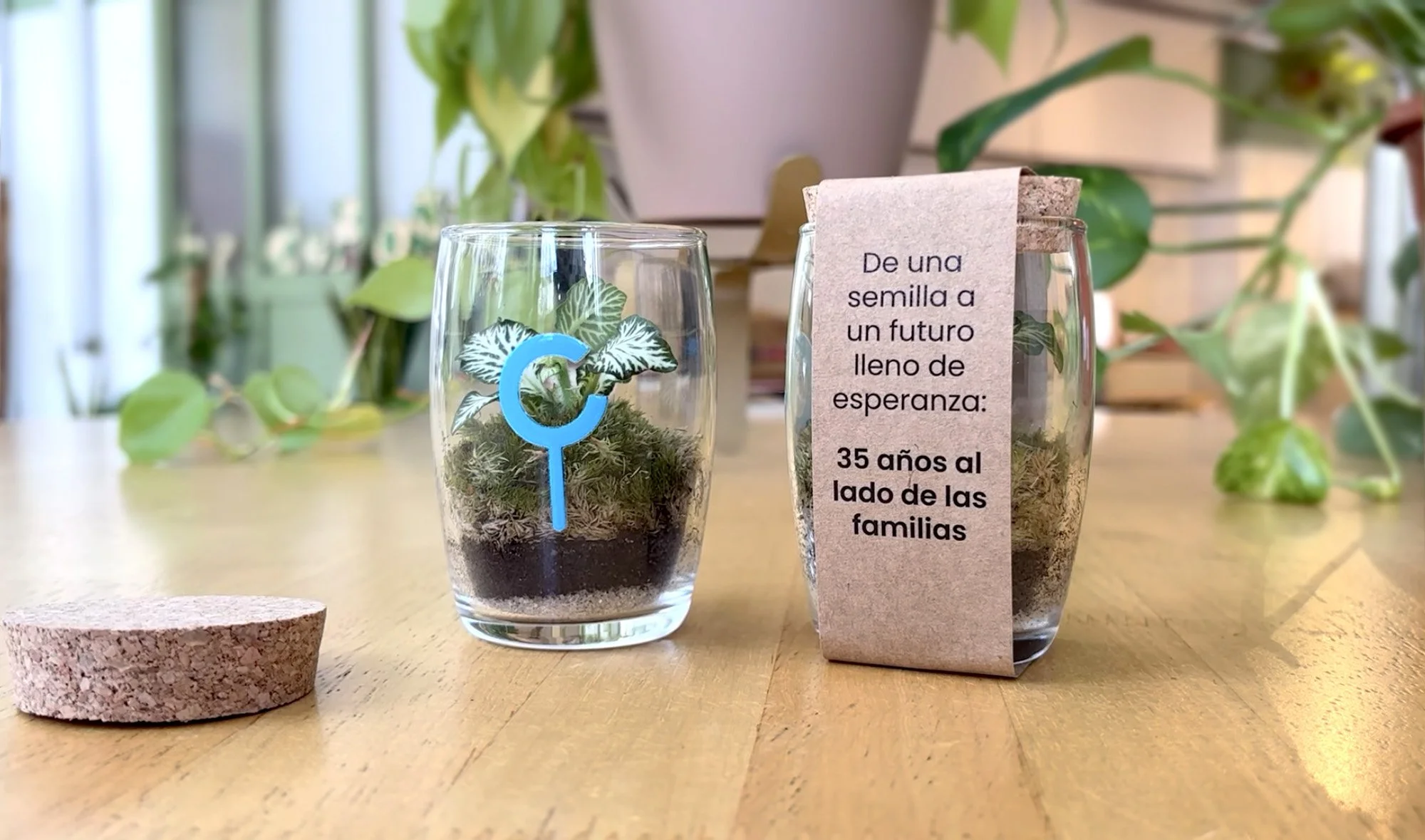 La Federació Espanyola de Famílies de Càncer Infantil celebra 35 anys, i nosaltres hem volgut acompanyar-los en aquest aniversari tan especial. Creiem fermament que el suport integral als menors amb càncer i a les seves famílies és essencial per millorar la seva qualitat de vida. Per això, donem 100 terraris eterns a les persones que van participar en aquesta commemoració.