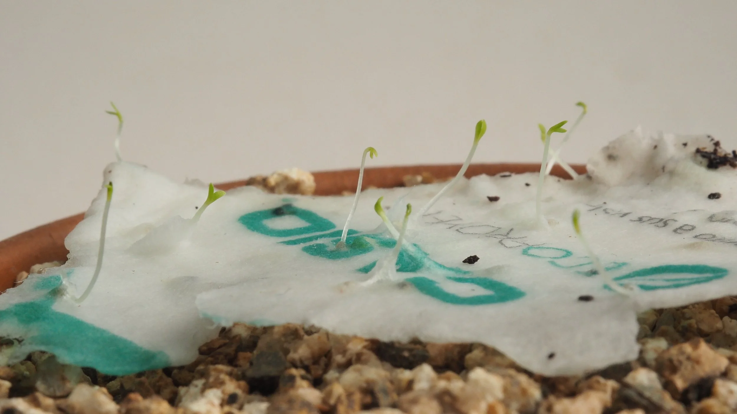 Nuestro papel de semillas está hecho en Barcelona con residuos de algodón y papel reciclado e incorpora semillas en su interior, de manera que, cuando ya has leído el flyer, la tarjeta o el póster, ¡los puedes plantar! Plantar en lugar de derrochar.