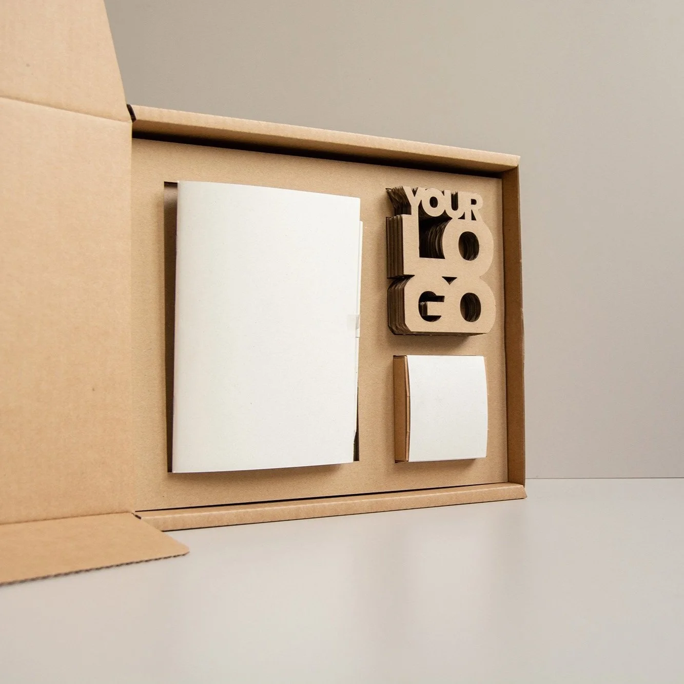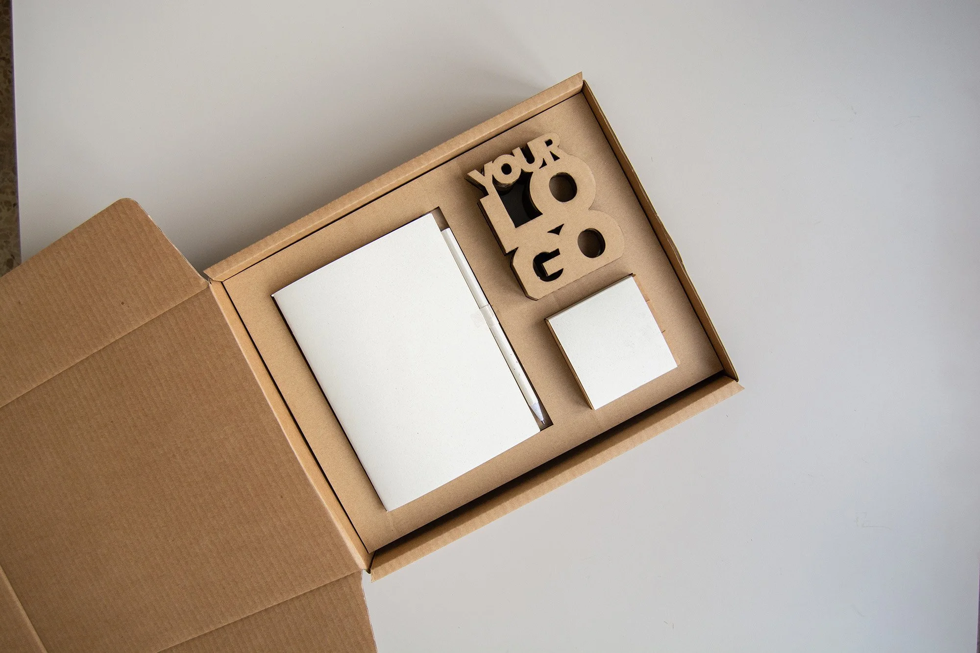 El pack de teletrabajo lleva una libreta de 60 páginas con portada plantable, un lápiz plantable, un brandnest y un pequeño calendario plantable, todo ello personalizados con tu marca.